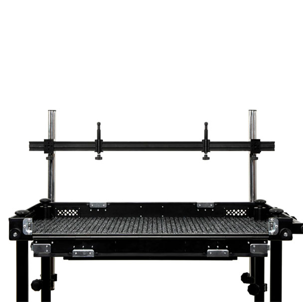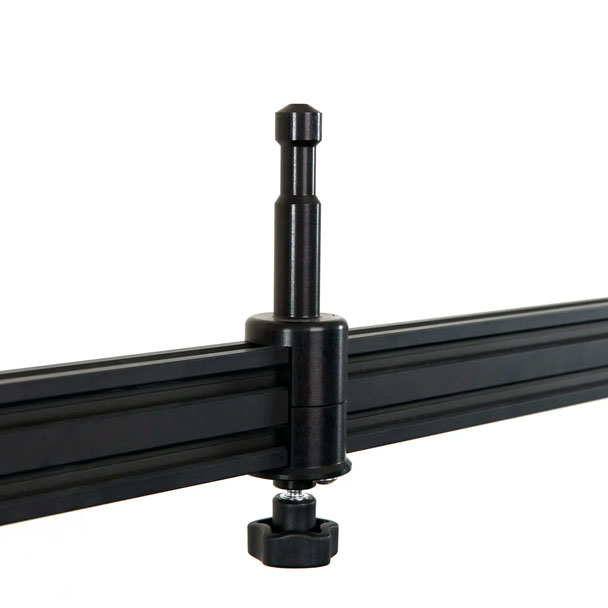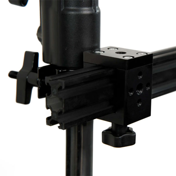 - Polyvalence des supports : Chaque rail est équipé de deux Baby Clamps 5/8″ coulissantes et de plusieurs trous filetés de 1/4″ et 3/8″ pour des équipements photo/vidéo supplémentaires.
