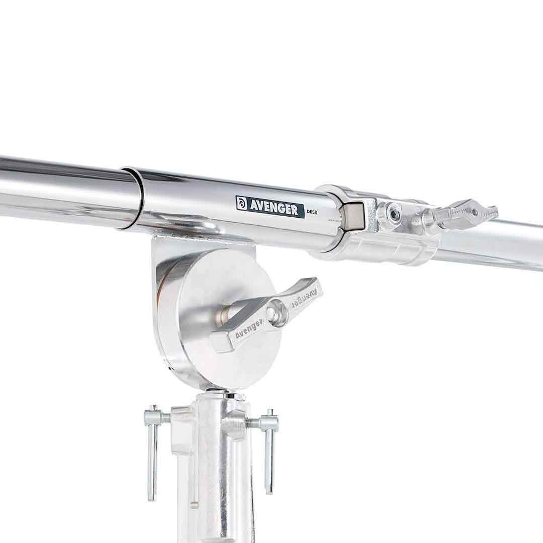 Le Avenger D650 Junior Boom Arm se monte sur le dessus d’un support robuste et permet de fixer un petit ou moyen projecteur avec softbox. Ce bras en acier a une finition chromée et comprend un contrepoids de 6,8 kg.