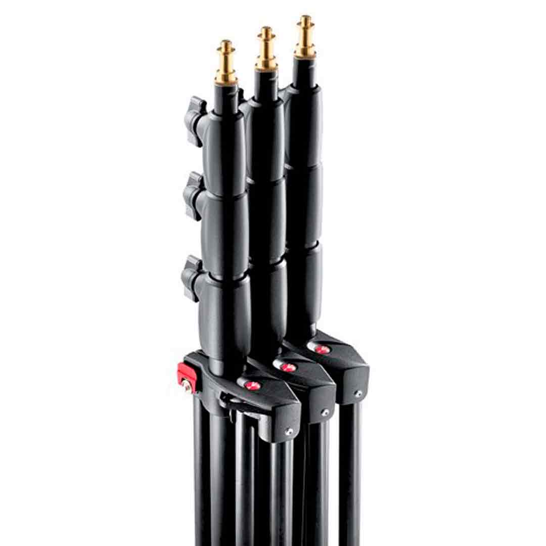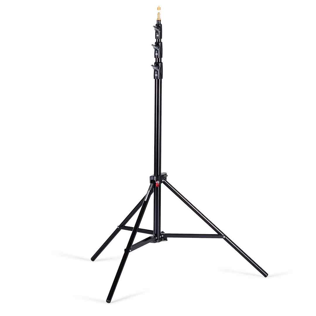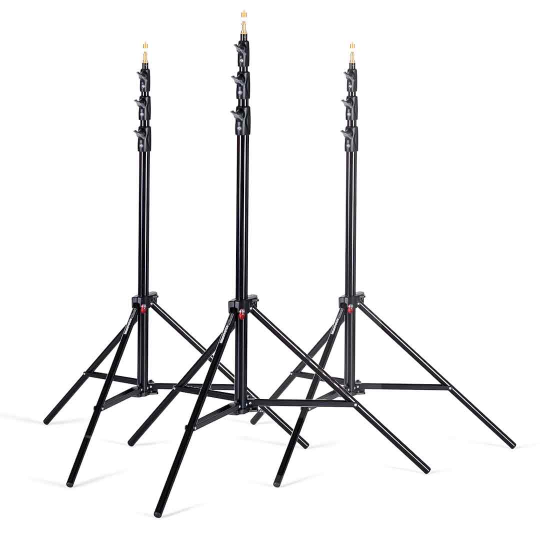 Dans un studio photo, le Kit de 3 pieds Manfrotto 1004 BAC permet une installation rapide de flashs, softboxes ou réflecteurs. Son large encombrement au sol de 106 cm assure une excellente stabilité, même avec des équipements lourds.