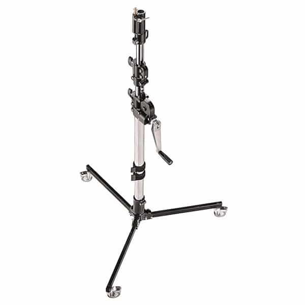 Le Manfrotto Pied Low Base Wind-Up est un pied lumière en acier avec colonne centrale à crémaillère. Il dispose de 3 sections, d’une jambe télescopique pour mise à niveau et est livré avec des roulettes à frein.