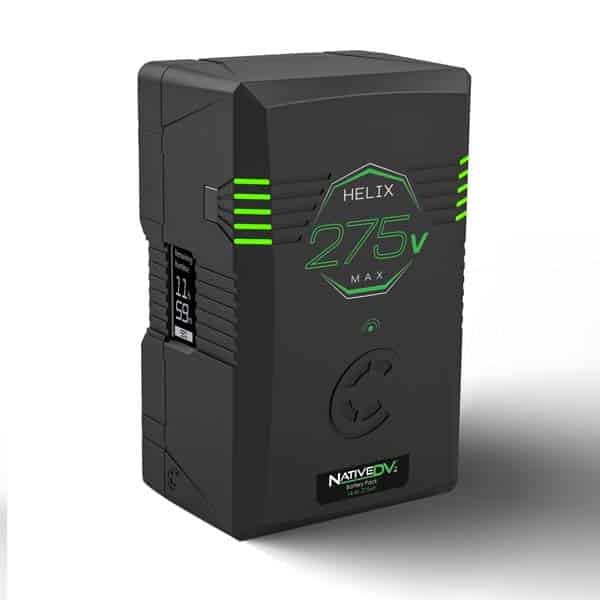 Core SWX Helix Max 275 (V-Mount) vient compléter la gamme de batterie Helix Max avec une plus grande capacité, très utile pour l’Arri Alexa 35 et la RED Raptor XL, qui ont besoin de beaucoup d’énergie. Son design est différent des modèles mini Helix Max (98wh et 150wh), mais ils ont toujours les mêmes caractéristiques, y compris l’écran LCD polyvalent (maintenant sur le côté), RFID, p-tap, USB, maintenant une jauge LED enveloppante, et la communication avec la caméra.