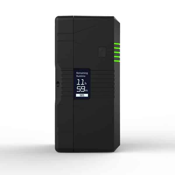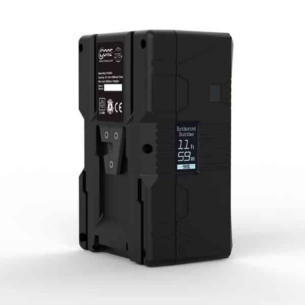 Les batteries Core SWX Helix Max 275 et 360 sont équipés d’un écran LCD triphasé rétroéclairé, monté stratégiquement sur le côté du pack, qui fournit à l’opérateur de la caméra des informations sur l’autonomie de la batterie et l’état de charge. Cet écran LCD avancé est conçu pour afficher une estimation de l’autonomie lorsque la batterie n’est pas utilisée et l’autonomie réelle calculée lorsqu’elle est utilisée, en échantillonnant la charge toutes les 3 secondes. Lorsqu’il est placé sur un chargeur, l’écran LCD pivote de 90 degrés pour afficher le temps de charge restant jusqu’à ce que la batterie soit complètement chargée. En outre, l’écran LCD affiche un graphique à barres, la durée d’utilisation en heures et en minutes et le pourcentage de capacité restante, ce qui permet aux cinéastes et aux professionnels de l’éclairage de prendre des décisions éclairées sur leur stratégie de gestion de l’énergie.