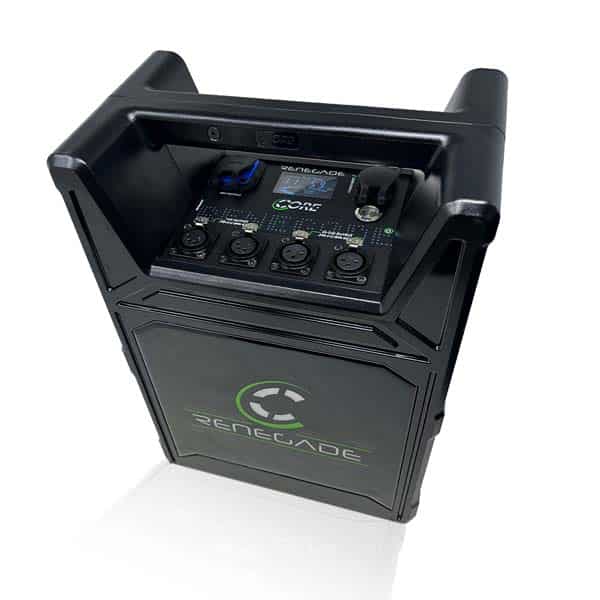 Core SWX Renegade (777Wh) est un bloc d’alimentation au lithium-fer-phosphate (LIFEPO4) de 777 Wh, logé dans un boîtier en polycarbonate, qui offre une option plus légère que le Maverick. Cette batterie peut fournir 15v, 28v et 48 simultanément avec une puissance allant jusqu’à 1200w. Le chargeur externe PFQ8 inclus permet de recharger le Renegade en moins de 3,5 heures à partir d’un état de décharge complet. Un écran LCD, similaire à celui que l’on trouve sur la batterie Maverick, indique à la minute près le temps de fonctionnement/de charge et le pourcentage de capacité, ainsi qu’une durée de fonctionnement approximative en mode veille.