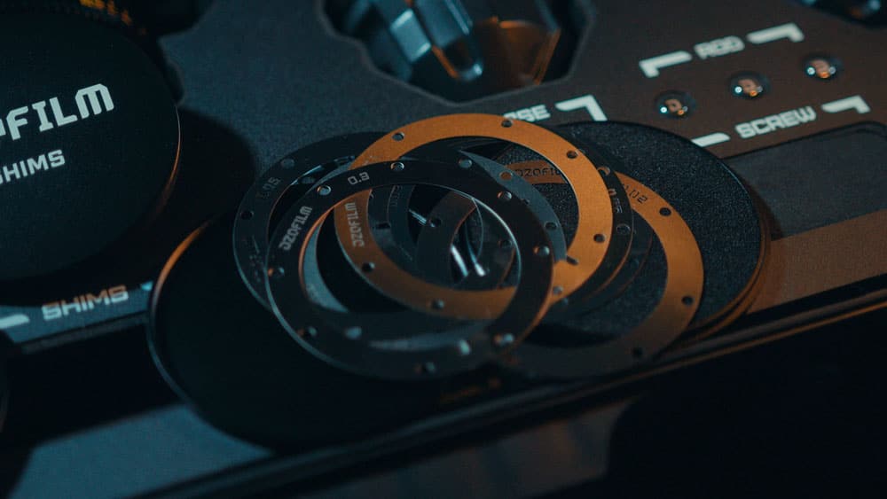 Si vous êtes intéressé par la série complète, sachez qu’elle est livrée dans une valise de transport avec plusieurs accessoires, chacun ayant leur emplacement de rangement bien précis. On y retrouve notamment des supports optique avec différents adaptateurs de tiges 15mm, ainsi que des shims. Ces petites feuilles métalliques se fixent à l’arrière de l’objectif et ont pour but d’agrandir le tirage optique afin d’ajuster très finement la distance de mise au point de l’optique. Elles sont un élément indispensable pour tout opérateur caméra lors de ses tests d’avant tournage.