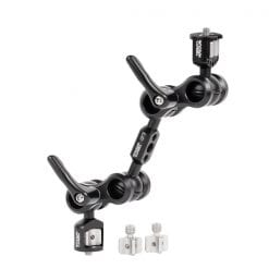 L’Universal Ultra Arm (Combo ¼-20 & ⅜-16) de Wooden Camera est un bras articulé avec des boutons universels interchangeables ¼-20 et ⅜-16 et des coussinets en caoutchouc antidérapants à chaque extrémité et une double clamp central. Retrouvez également quatre broches de localisation – situées à la base Ultra Arm – qui peuvent être installées la variation de votre appareil compatible avec le montage d’accessoires SmallHD ou ARRI. Disponible en mini-monture pour moniteur, longueurs de 3″, 5″ et 8 “.