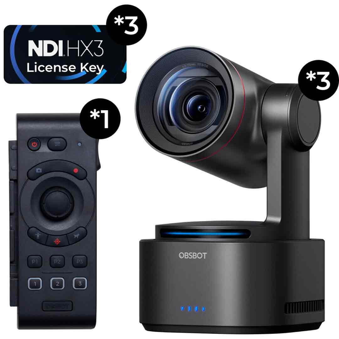 Pack multicaméra complet avec 3 OBSBOT Tail 2 et 3 licences NDI