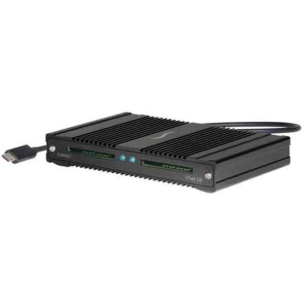 Via l’interface Thunderbolt 3 à 40 Gbits et deux slots pour cartes CFast 2.0, il est possible de transférer les données jusqu’à une vitesse maximale de 1000 Mo/s (soit plus du double que la majorité des lecteurs de cartes mémoires en connexion USB 3.0).