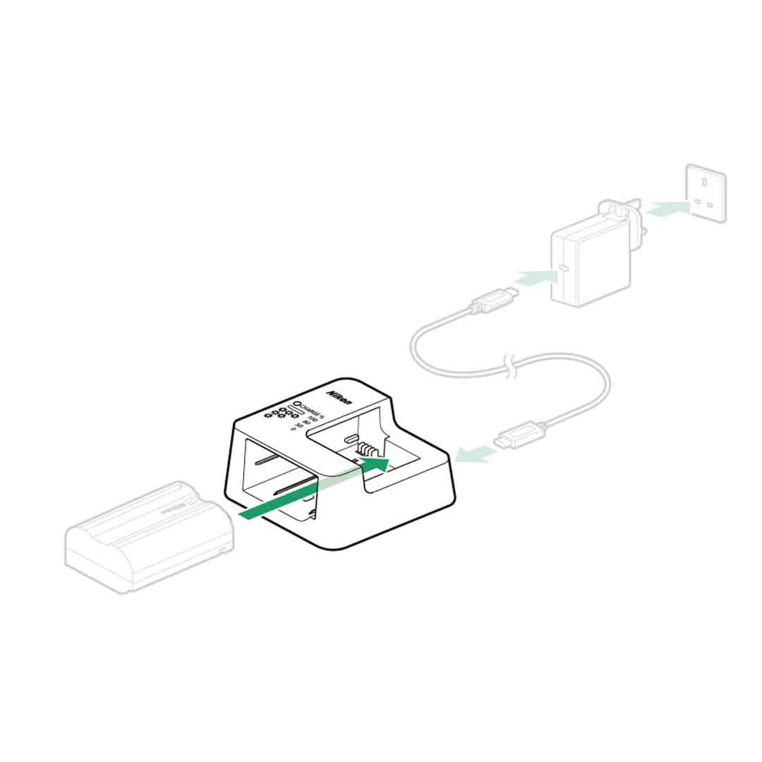 Branché à un hub USB ou à une prise murale USB-C, il devient un accessoire discret et efficace pour maintenir en permanence vos batteries Nikon prêtes à l’emploi.
