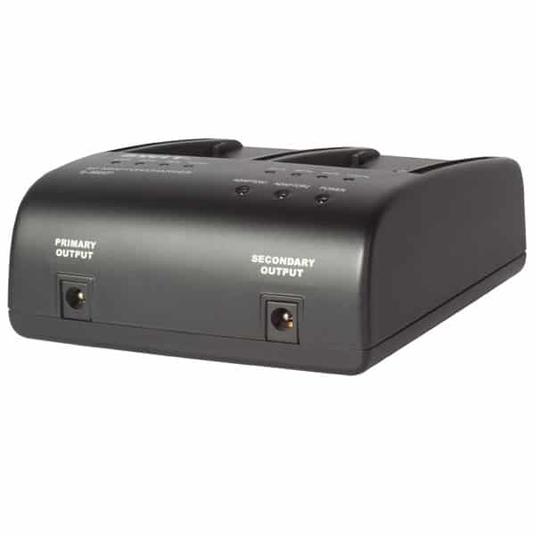 Attention : Un adaptateur factice est fourni pour une sortie DC. Pour recharger deux caméras en simultané, l’achat d’un adaptateur complémentaire est nécessaire.