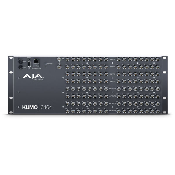 La AJA KUMO 6464 Compact 64×64 3G-SDI offre 64 entrées et 64 sorties vidéo et audio 3G-SDI, tout en maintenant un profil fin et compact de 4 RU. La grille de commutation dispose d’un contrôle réseau élégant et puissant basé sur le Web, et prend en charge tous les signaux SDI jusqu’à la norme 3G-SDI, y compris les signaux HD et même les signaux 4K / Ultra HD. Construit avec des normes de haute qualité, la grille de commutation AJA KUMO 6464 est idéal pour toute installation dans laquelle un équilibre entre taille et capacité de routage est essentiel.