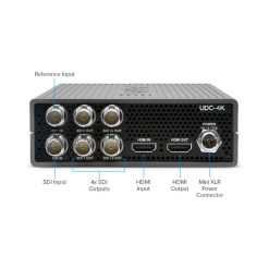 Distribution de signal : le UDC‑4K agit aussi comme distribution amplifier (DA) 1 vers 4 en 12G‑SDI. Il peut distribuer le signal converti sur 4 sorties SDI et 1 HDMI, ou bien faire du loop‑through selon les besoins de la chaîne.