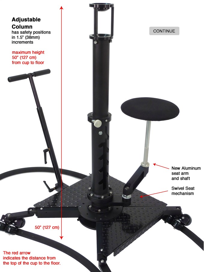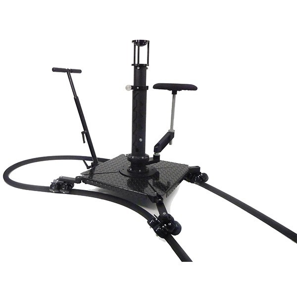 Kit complet Spider Dolly 4 roulettes comprenant le Spider dolly 4 roulettes, une colonne DV ajustable, un bol 100mm / colonne DV, une assise pivotante, un méchanisme pivotant 360° / siège spider dolly, une plateforme et une barre de poussée.