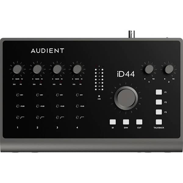 Le Audient iD44 MKII est une interface audiop USB-C avec 20 entrées et 24 sorties. La dernière génération d’iD44 avec le MKII voit ses performances audio améliorées et des fonctionnalités supplémentaires indispensables comme :