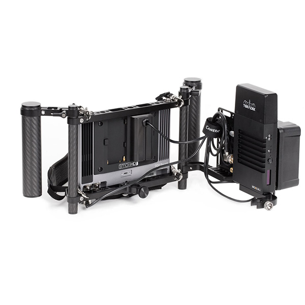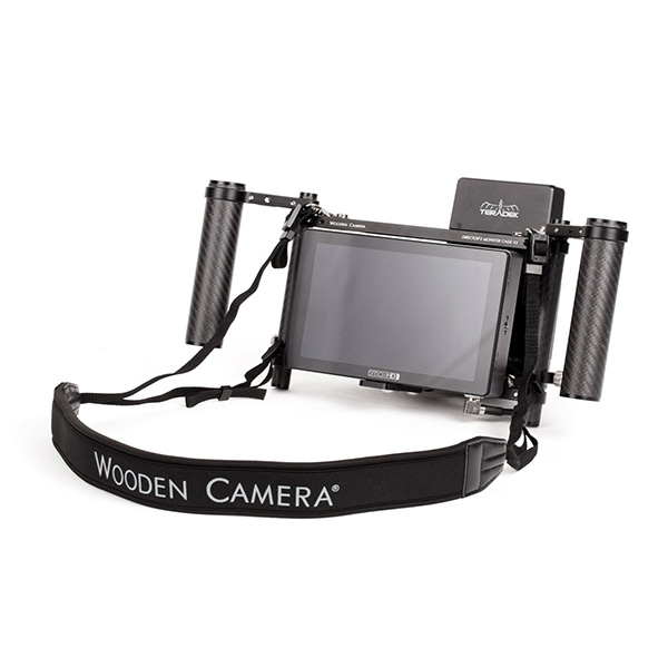 La conception sans outil des poignées permet de les replier pour faciliter l’emballage et la protection solaire peut être réutilisée pour servir de housse de protection. Une courroie de cou matelassée avec 4 points de fixation et des clips rapides, des zones de montage Teradek permettant de monter jusqu’à deux récepteurs sans fil et un serre-câble pour la gestion des câbles sont également inclus.