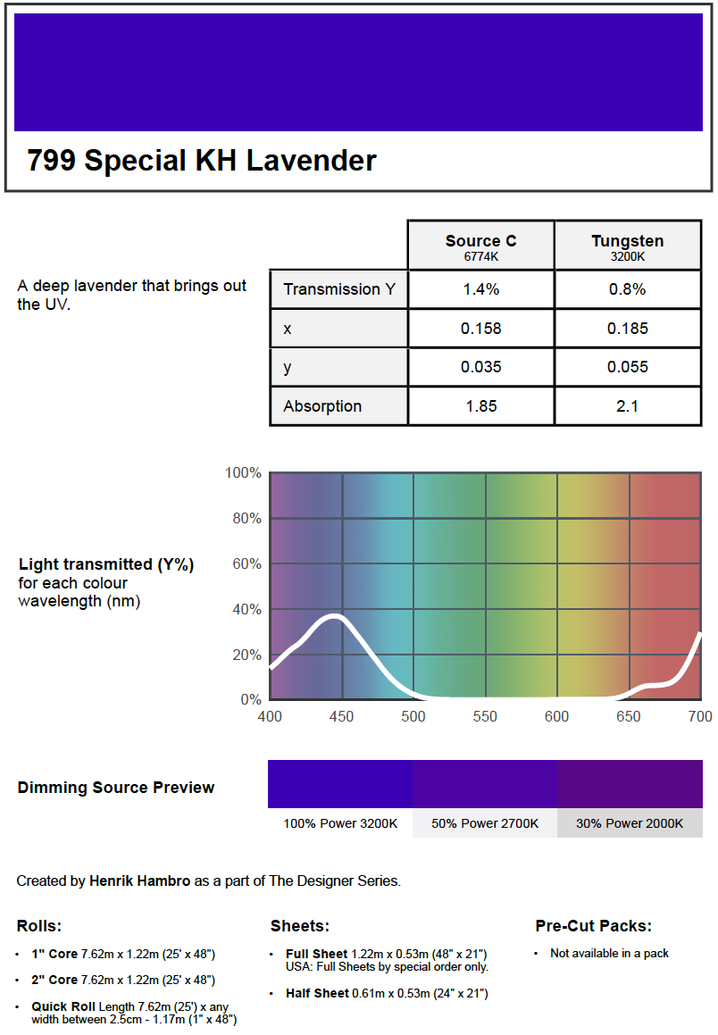 FILTRE LEE FILTER 799 SPECIAL KH LAVENDER (feuille)