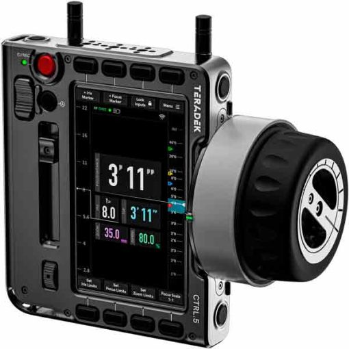 Compatible avec tout l’écosystème Teradek RT, la CTRL.5 dispose d’une bibliothèque d’objectifs intégrée et permet d’afficher des données critiques de l’objectif directement sur l’écran, garantissant une gestion optimale de la mise au point en conditions de tournage. Elle est également équipée de plusieurs points de montage pour fixer divers accessoires.