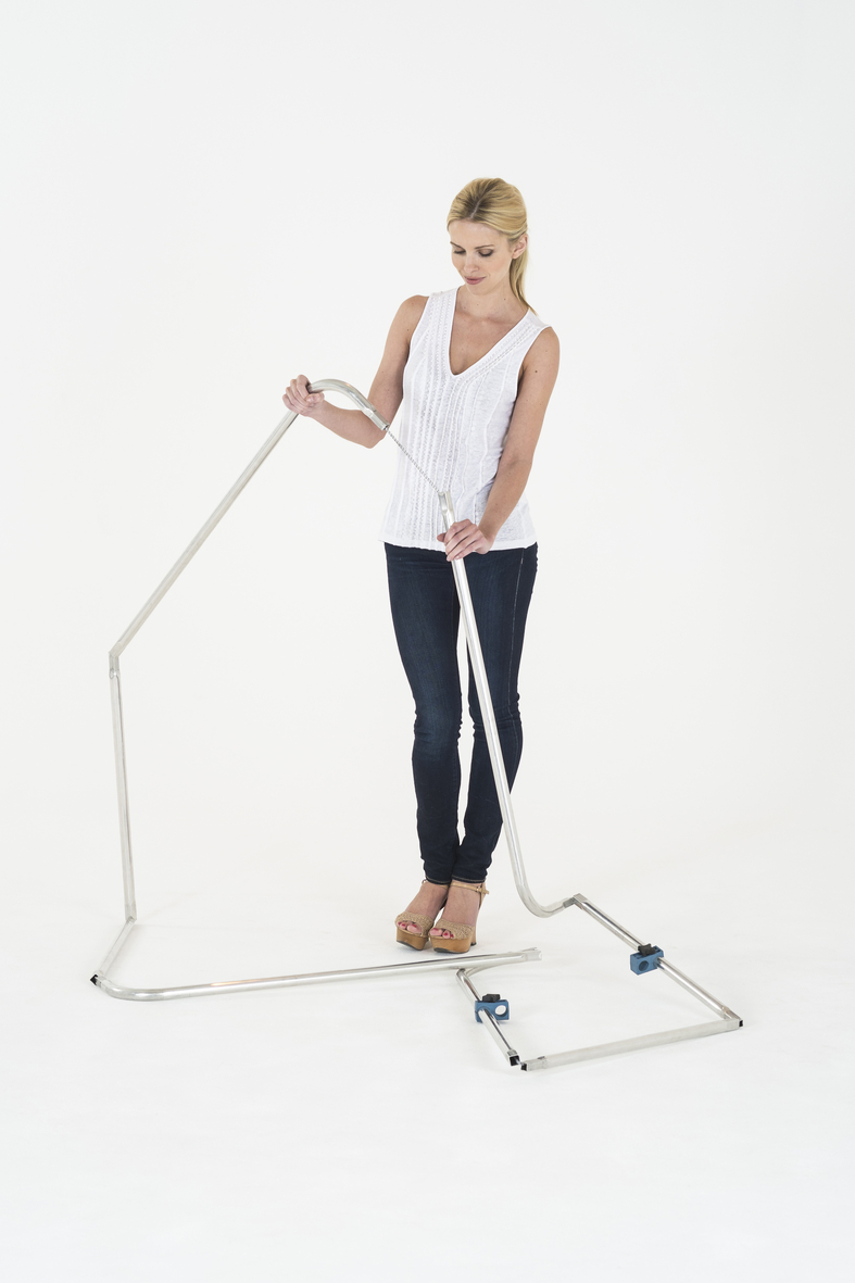 Il est composé de 3 panneaux pliants avec un cadre en tube d'aluminium, la structure a été conçu pour tenir seule. Les toiles viennent simplement se clipser sur le cadre en alu. Elles sont vendues en Kit (1 cadre et 1 toile) ou séparément (noir ou vert incruste).