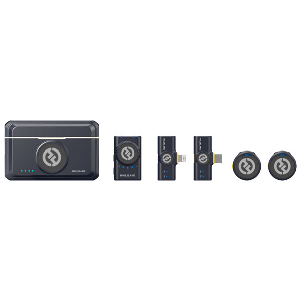 L’émetteur est doté de la technologie Laser Direct Structuring, antenne permettant de stabiliser la transmission, et d’un microphone sans fil léger, qui ne pèse que 9 grammes. Le système est accompagné d’un étui de chargement compact capable de prolonger l’autonomie jusqu’à un total de 40 heures lorsqu’il est entièrement chargé (la durée de chargement complet est de 1h30). Trois indicateurs LED sur le boîtier vous permettent de contrôler l’état de la batterie. Il est compatible avec les smartphones (Iphone, Android) et ordinateurs en plus des caméras et DSLR, il existe 2 modes d’enregistrement : Mono et Stéréo. La technologie avancée de suppression du bruit environnant (ENC) bloque efficacement le bruit ambiant. Il est idéal pour les interviews, les vlogs, les podcasts, les tournages en extérieur, l’enseignement en ligne et toute autre application. Hollyland Lark M2 est également disponible en 3 autres versions : Camera, Mobile Lightning et Mobile USB-C.