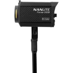 Le Nanlite Forza 150B est un projecteur LED à monture FM qui bénéficie d’une température de couleur réglable de 2700K à 6500K et d’un IRC de 96. Le panneau mesure 24.7 x 13.3 x 11.5 cm et est assez compact pour un monolight. Il dispose d’un support d’accessoires avant Bowens le rendant compatible avec la plupart des modificateurs du marché. Puissant, il peut émettre 23 130 Lux à 1m et a un dimmer de 0 à 100%. Il peut être encore plus puissant avec un réflecteur longue portée à monture Bowens. Le Forza 150 dispose d’une multitude d’options de contrôle, via DMX/RDM pour un contrôle centré sur la console, ainsi que sans fil en bluetooth via l’application mobile. Le projecteur peut s’alimenter via une alimentation 110 à 240 VAC incluse ou via des batteries V-Mount lorsque le courant secteur n’est pas disponible.