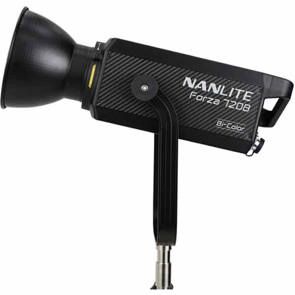 Enfin, le Nanlite Forza 720B dispose d’un support de joug compatible avec les baby pins 5/8 et les junior pins 1 et 1/8. Le joug lui-même a un porte-parapluie et un verrou unilatéral pour un réglage rapide.