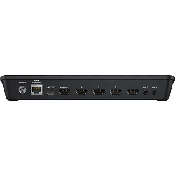 L’ATEM Mini Pro conserve la même configuration sur le panneau arrière sur laquelle quatre entrées HDMI sont disponibles à l’arrière du châssis et elles peuvent entrer en vidéo HD 1080p. Il y a aussi une sortie HDMI pour un projecteur ou une surveillance multivue, une sortie USB Type-C comme pour l’enregistrement de vidéo HD sur un ordinateur et un port Ethernet RJ45 10/100/1000 pour la diffusion en direct directe ainsi que la gestion du système, la télécommande et mises à niveau. Vous pouvez ajuster la fréquence d’images en fonction de la qualité de votre flux, et il n’y a pas besoin de logiciel de streaming supplémentaire car le Pro comprend un encodeur matériel intégré.