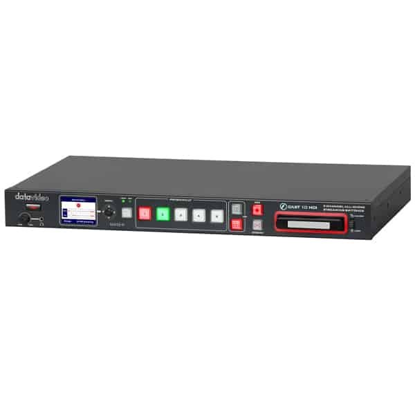 Le Datavideo iCast-10NDI est un nouvel équipement de production innovant qui abrite un mélangeur, un contrôleur de caméra et un encodeur de streaming dans un seul boîtier. Une variété d’entrées peuvent être connectées à iCast-10NDI pour créer des présentations accrocheuses avec différentes sources vidéo. Datavideo iCast-10NDI dispose en effet de cinq entrées vidéo avec un port sélectionnable SDI/HDMI, trois ports HDMI uniquement et un port USB 3.0. Vous pouvez également recevoir des vidéos IP via un port RJ-45. Les vidéos IP sont diffusées à l’aide du protocole RTMP(S) ou SRT. Le mélangeur Datavideo iCast-10NDI fournit un aperçu intuitif de vos sources de sortie. Vous pouvez les afficher horizontalement ou verticalement (une nouvelle technologie pour visionner des vidéos sur des appareils mobiles) et prévisualiser ces changements de mode sur un écran Multiview.