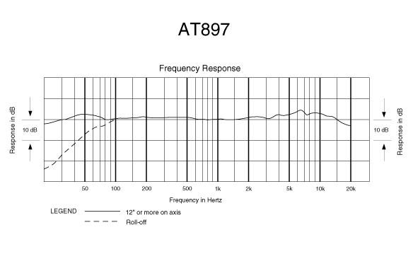 Il faut savoir que la performance de l’AT897 est légèrement meilleure sur alimentation fantôme que sur pile, la sensibilité du microphone alors passe de 8,9mV/Pa à 10mV/Pa et le SPL max. augmente de 115 à 129 dB.