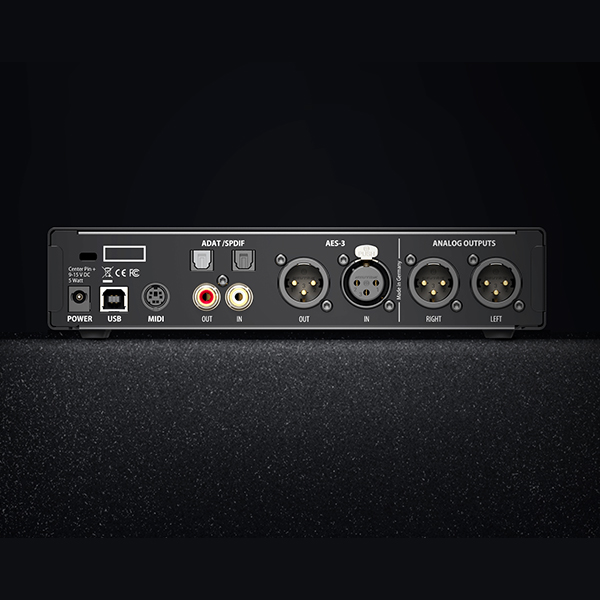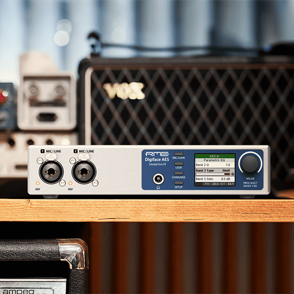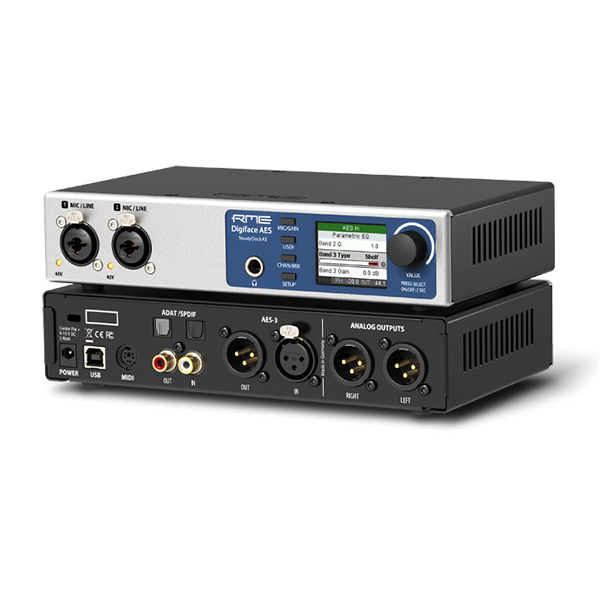 La RME Digiface AES est une Interface numérique USB 192 kHz avec E/S analogique AES/SPDIF/ADAT. C’est une interface professionnelle USB 2.0 de 14 entrées et 16 sorties, alimentée par le bus, avec 2 canaux d’entrée analogiques universels Mic/Line et 4 canaux de sortie analogiques (2 XLR, 1 TRS) complétant sa section d’E/S numérique. Avec un excellent ensemble de connectivité numérique, SteadyClock FS, un fonctionnement entièrement autonome et un égaliseur paramétrique intégré, la Digiface AES se présente comme la solution tout-en-un parfaite pour l’enregistrement et la lecture de sources numériques et analogiques, ainsi que pour une lecture/monitoring flexible via TotalMix FX.
