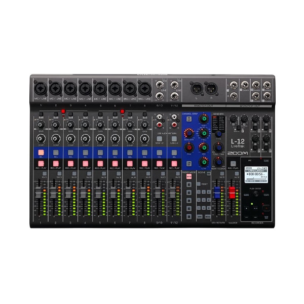 Avec le LiveTrak L-12, vous pouvez enfin mixer, enregistrer et contrôler le son avec un seul appareil. C’est la seule console numérique qui vous permet de mixer votre performance en direct et d’enregistrer jusqu’à 12 canaux distincts – tout en offrant cinq mixages personnalisés pour des retours individuels au casque d’écoute. Les 12 canaux distincts du LiveTrak (huit mono et deux stéréo) disposent d’un égaliseur à 3 bandes avec médiums paramétriques et de 16 effets pour la boucle départ/retour intégrée. LiveTrak vous permet d’enregistrer sur une carte SD 12 pistes audio au format WAV jusqu’en 24 bits/96 kHz, tout en mixant simultanément votre spectacle en direct.
