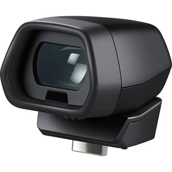Le Blackmagic Design Pocket Cinema Camera Pro EVF (Pocket 6K Pro) est un viseur compact conçu pour la Blackmagic Pocket Cinema Camera 6K Pro. Il s’insère dans la fente EVF du 6K Pro et se verrouille à l’aide d’une vis M4 intégrée. Lorsqu’il est utilisé, l’écran tactile LCD intégré à la 6K Pro s’éteint, de sorte que vous ne modifiez pas accidentellement les paramètres. L’écran fournit une image de résolution 1280 x 960 sur son écran micro-OLED. L’affichage fournit une variété d’informations telles que la fréquence d’images, l’histogramme, l’état de l’enregistrement. Il accepte des fréquences d’images en entrée jusqu’à 60 ips et une couleur RVB 24 bits pour une représentation claire de votre image. Sa dioptrie offre un réglage de -4 à +4 et l’écran dispose également d’un tableau de mise au point numérique. Il peut pivoter jusqu’à 70° et un ensemble de quatre œilletons (gauche/droite) est inclus pour convenir à vos besoins et votre confort.