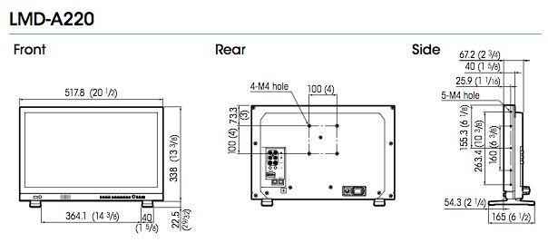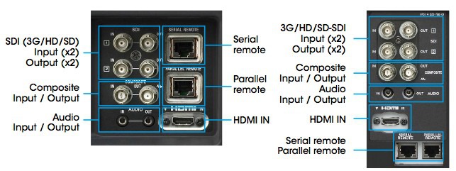 Le moniteur LMD-A220 est équipé d’interfaces d’entrée standard intégrées : 3G/HD/SD-SDI (x2), entrée (x1) HDMI (HDCP) et composite (x1).