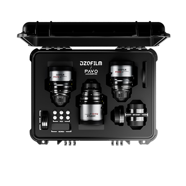 Le DZOfilm Pavo 2x Anamorphic Prime A set 28/40/75mm T2.1 (Neutre, Impérial) est un kit qui intègre les objectifs de focales 28mm, 40mm et 75mm de la gamme Pavo.