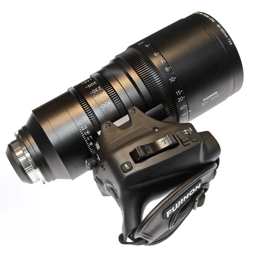 Le cabrio Fujinon 85-300 offre une longueur focale de 85 à 220 mm à T2.9 puis à T4.0 jusqu’à 300 mm, avec une amplitude de point de 200 degrés. Il est donc le zoom idéal pour les documentaires, les publicités, le sprises de vues animalières, etc.
