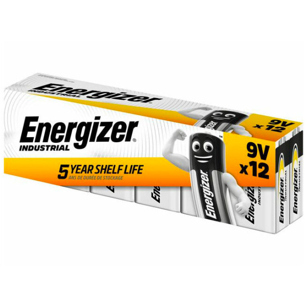 Ce pack comprend 12 piles Alcaline Industrial Energizer 9V. Ces piles sont adaptées à un usage industriel standard des appareils du quotidien et sont stockables pendant 5 ans et utilisable à une amplitude thermique de -5°C à +35°C.