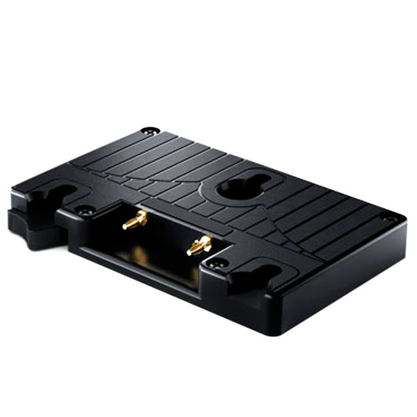 Support Gold Mount permettant de fixer des batteries à 3 goujons de fabricants tels que Anton Bauer, Core, IDX et autres à la URSA Cine, et offrant une sortie d’alimentation Lemo à 2 broches additionnelle.