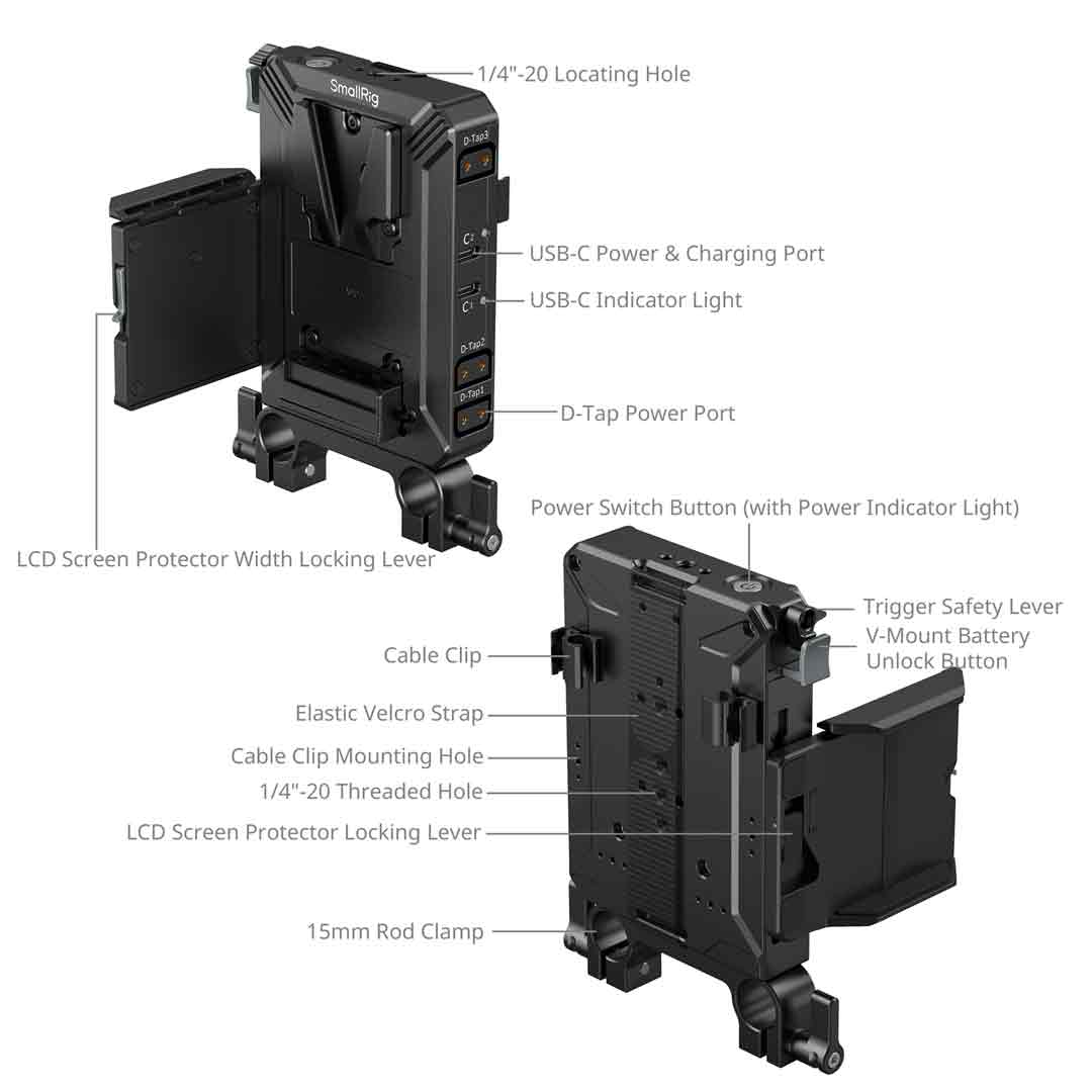 Le SmallRig 5226 dispose de multiples ports d’alimentation intégrés, notamment D-Tap et USB-C, permettant d’alimenter simultanément plusieurs appareils : caméras, moniteurs, émetteurs sans fil, etc.