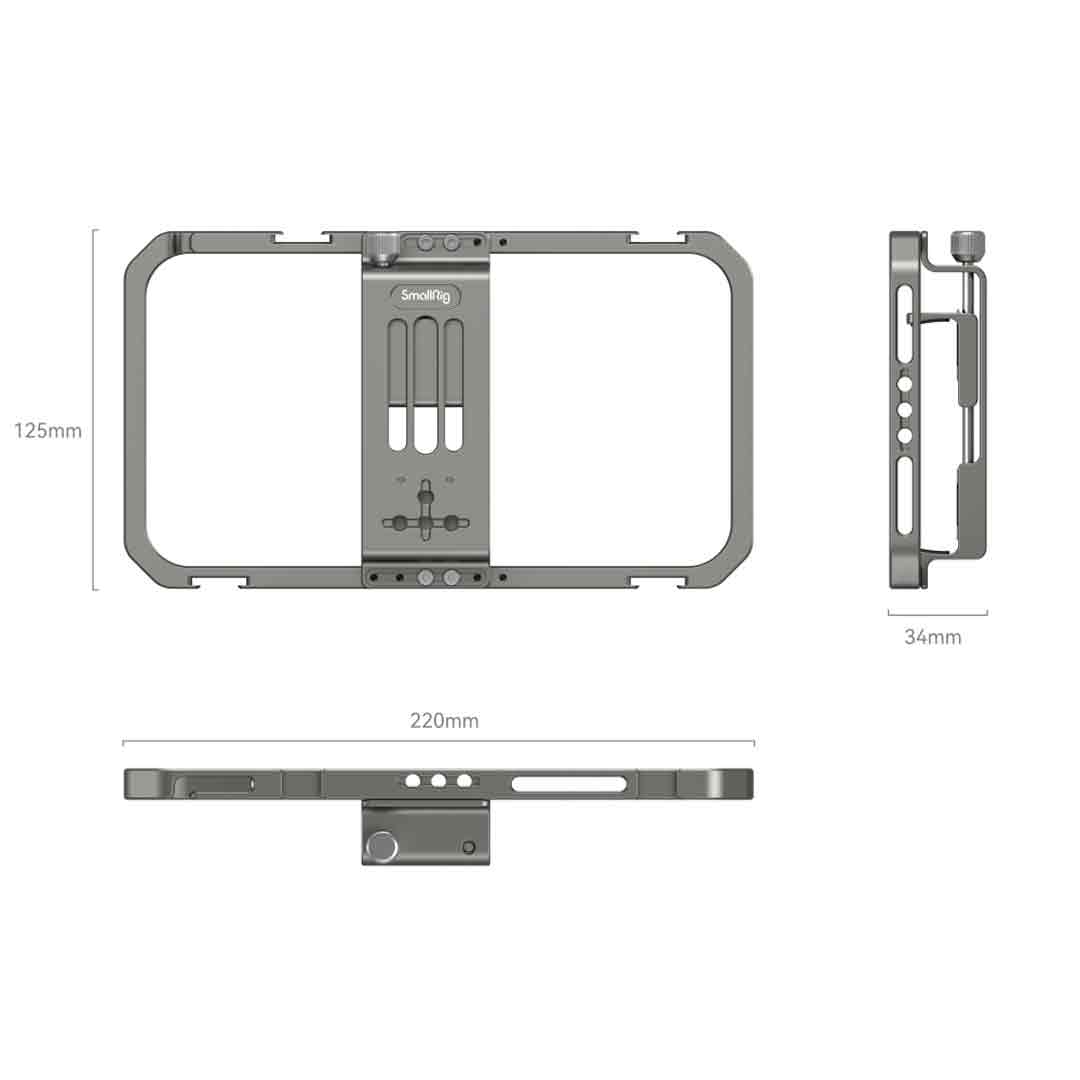 Le SmallRig 2791B est une cage universelle pour smartphone conçue pour les créateurs de contenu, vloggers et vidéastes mobiles. Compatible avec la majorité des smartphones du marché, elle accepte des appareils d’une largeur comprise entre 57 mm et 90 mm et d’une épaisseur jusqu’à 17 mm, avec ou sans coque. Son système de serrage à vis assure une fixation stable et sécurisée, évitant les glissements accidentels.