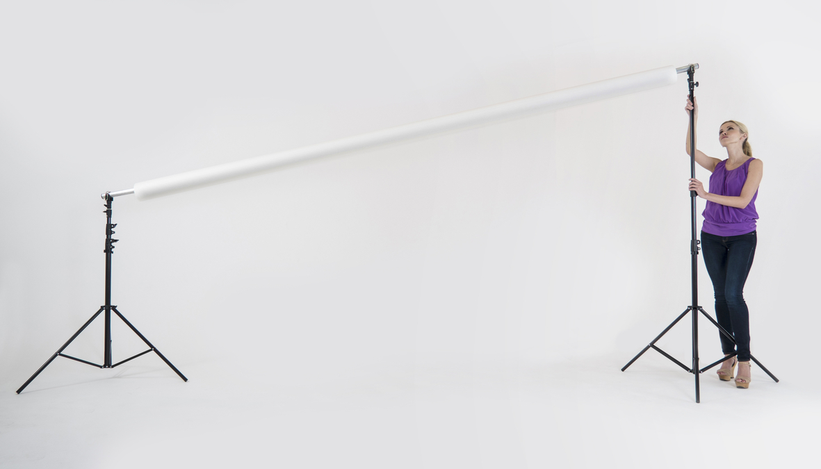 Le support de fond est disponible en 3 ou 4 mètres de long. La version en 4 mètres peut être agrandie à 6 mètres afin d'ajuster les fonds tissus, pour cela il faut une option d'extension à 6 mètres (référence 1143).