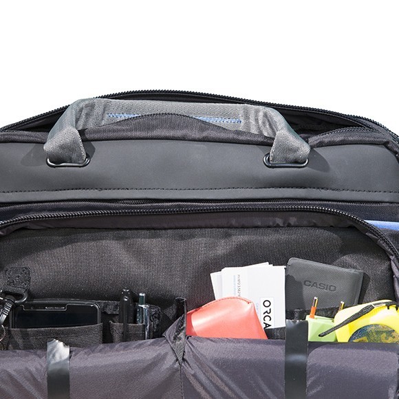 - Poches spéciales pour laptop jusqu’à 17″ ou tablette jusqu’à 10″