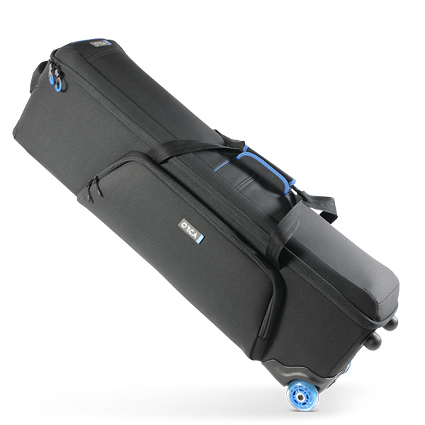 La gamme de sacs pour trépieds Orca est dotée des roulettes robustes, des poignées de transport, une grande poche extérieure pour accessoires et deux boucles externes pour attacher une bandoulière en option (vendue séparément).