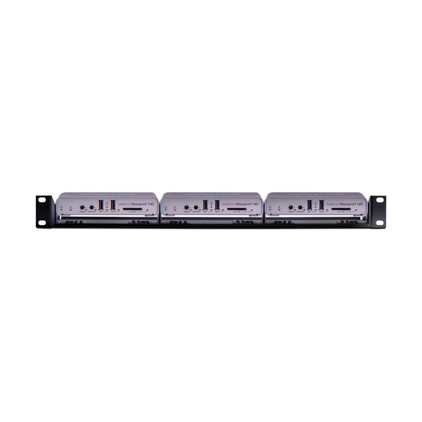 Le kit de montage en rack Matrox Monarch HD contient une monture en rack de 19″ qui vous permet d’installer jusqu’à trois périphériques Matrox Monarch HD dans un seul espace 1RU. Chaque unité Monarch HD est fixée individuellement à l’aide de deux supports inclinés. Tous les supports et les vis nécessaires sont fournies.