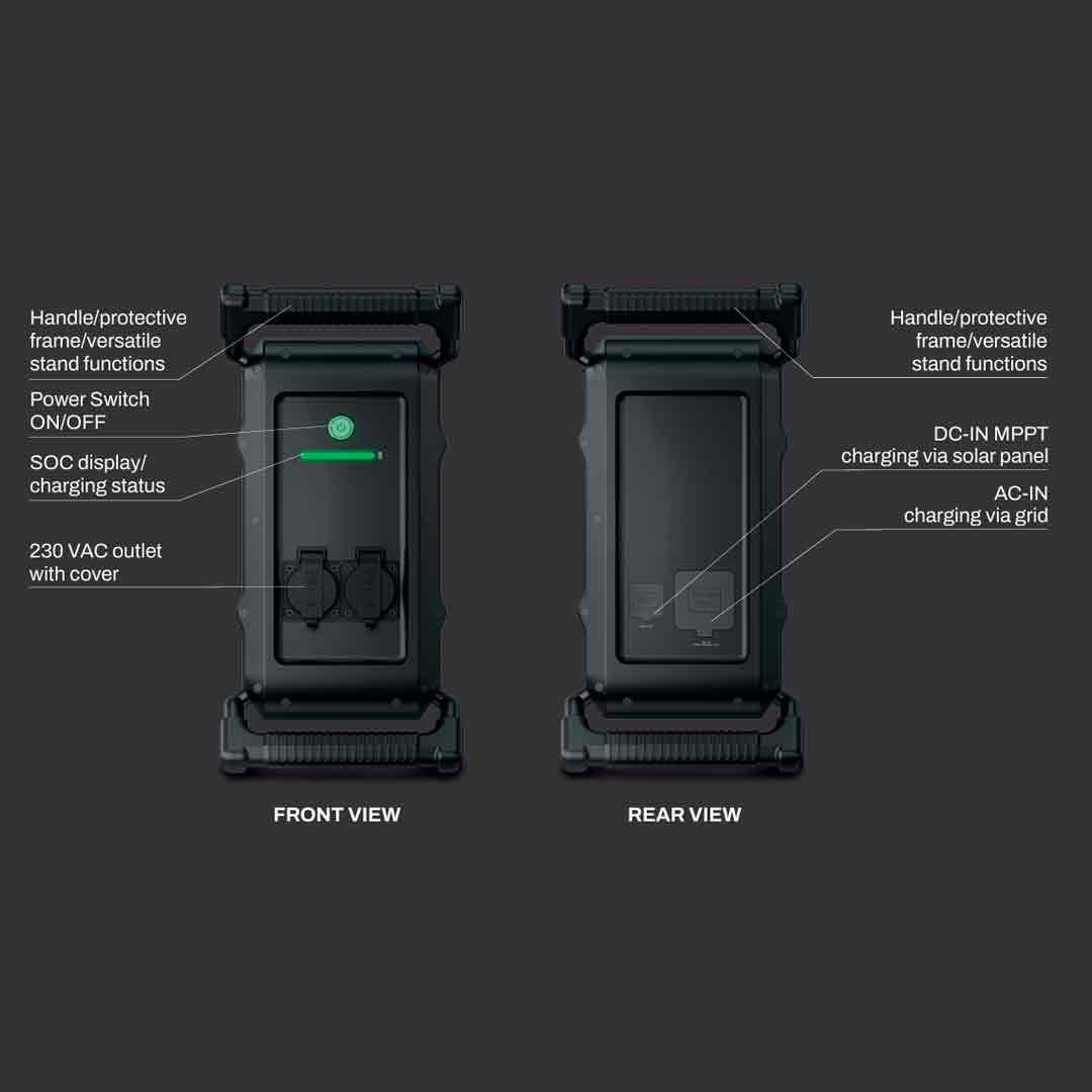 Par ailleurs, le Power2Go Work est également compatible avec une alimentation solaire (jusqu’à 500 W), pour une recharge plus écologique.