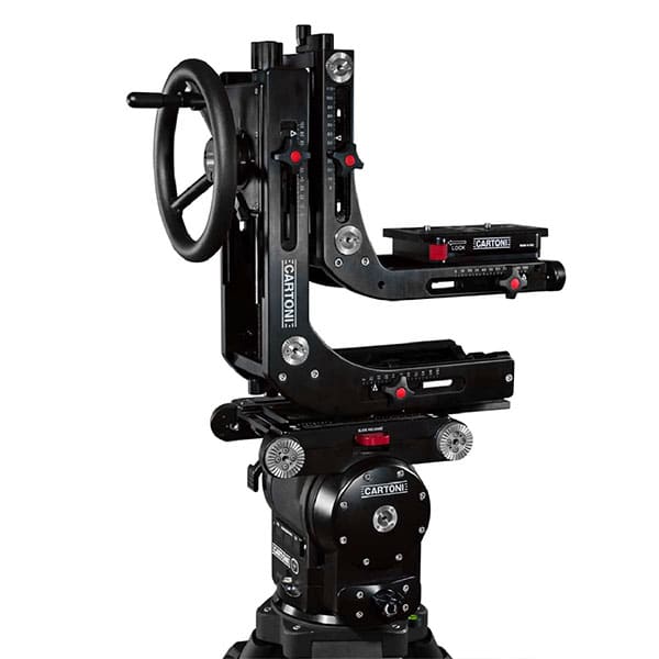 Cartoni Total Dutch permet d’ajouter un 3ème axe de rotation latérale à n’importe quelle tête classique heayvy duty pan and tilt et qui permet une extraordinaire rotation de 360°. La rotation est dirigée par un volant percé au centre pour le passage de câble.Deux contrepoids d’1 Kg complètent l’ensemble de l’équipement pour une véritable rotation nodale autour du centre optique. La tête Total Dutch prête à être installé sur toutes les têtes grâce à deux vis de 3/8″.
