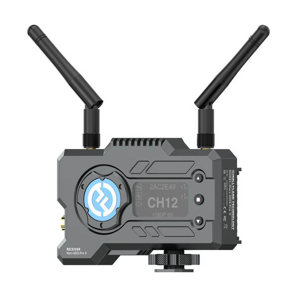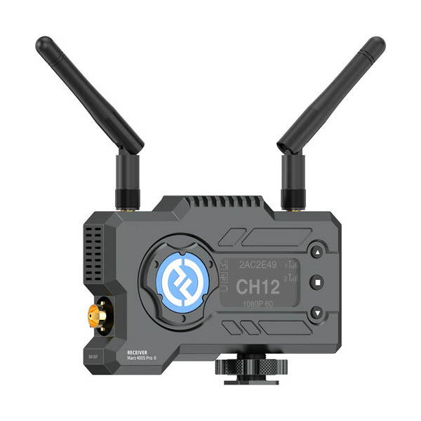 Le Hollyland Mars 400S PRO II RX est récepteur de vidéo sans fil. Ce récepteur actualisé fournit deux sorties HDMI et SDI à votre équipement de surveillance et présente une latence extrêmement faible de 70 ms et un débit de données élevé de 12 Mb/s avec une transmission en visibilité directe jusqu’à 152,4 m. Pour un signal en visibilité directe puissant, le récepteur comprend deux antennes externes, dont l’une est incluse comme antenne de rechange. L’émetteur Mars 400S PRO II peut transmettre simultanément de la vidéo à un maximum de deux récepteurs.
