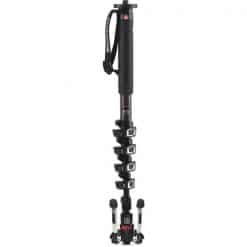 Le Manfrotto XPRO MVMXPROC5 (Carbon) est un monopole vidéo en aluminium qui dispose de 5 sections et qui bénéficie d’une base FLUIDTECH. Cette base permet des pans et tilts fluides normalement irréalisables sur un monopode standard. Relativement léger (1kg) et compact (60.5cm replié), il est facilement transportable. Avec une hauteur maximale de 188cm et une hauteur minimale de seulement 60.5cm, il peut être ajusté pour convenir aux utilisateurs de différentes hauteurs et pour diverses tâches différentes. Il supporte jusqu’à 5kg, ce qui le rend compatible avec bon nombre de configuration caméra/objectif. Il bénéficie de verrous à rabat Power-Lock brevetés de Manfrotto qui s’ouvrent et se ferment pour assurer un fonctionnement rapide et un verrou serré et inflexible. Les sections de jambe en forme de D ont été conçues non seulement pour compléter les Power-Locks, mais aussi pour éviter les torsions indésirables entre les sections de jambe et augmenter la stabilité du monopode.