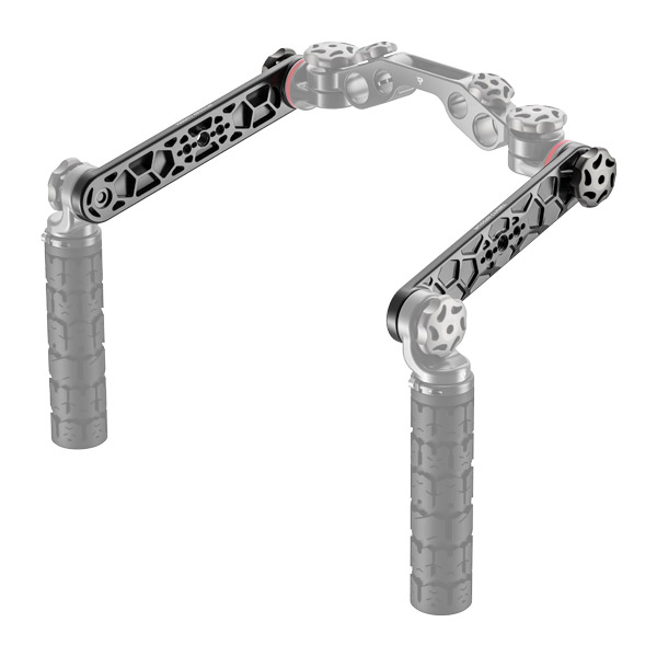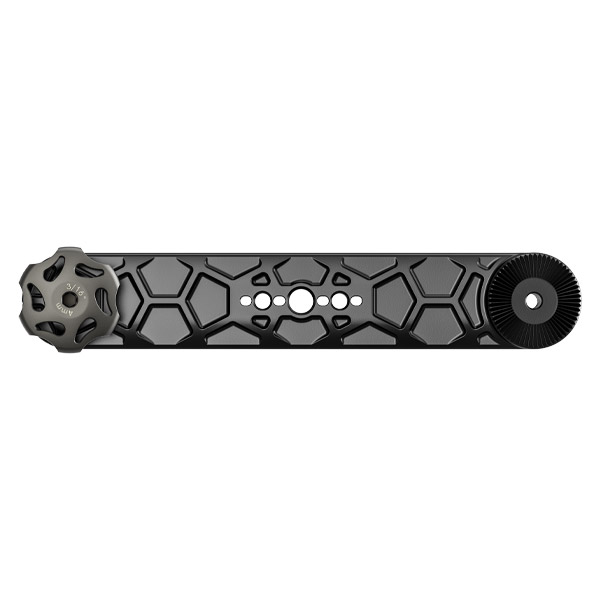 Les rosettes de 32 mm utilisent des vis standard M6, assurant une compatibilité parfaite avec les accessoires rosette du marché. De plus, des points de fixation ¼”-20 et ⅜”-16 sont présents le long de la structure pour l’ajout d’accessoires tels que moniteurs ou équipements divers. Le bouton de serrage en acier inoxydable, revêtu de DLC (Diamond-Like Carbon), dispose de rainures ergonomiques et d’un orifice central permettant l’utilisation d’une clé hexagonale 3/16” ou 4 mm afin d’optimiser le serrage.